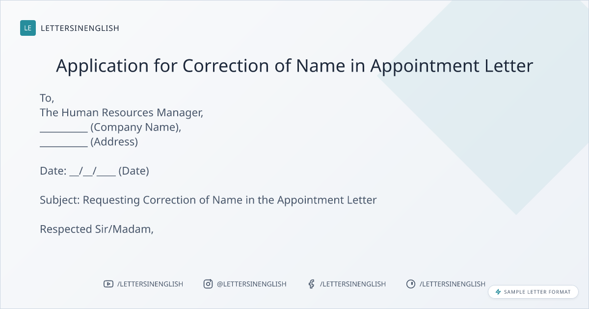 Sample Letter for correction of name in the appointment letter