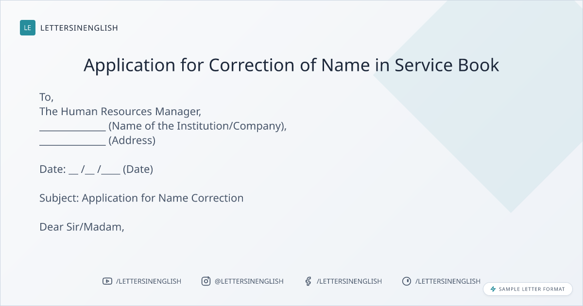 Therefore, I request you to kindly correct the name on the service book at the earliest. I am attaching a copy of my Identity proof for your ready reference.