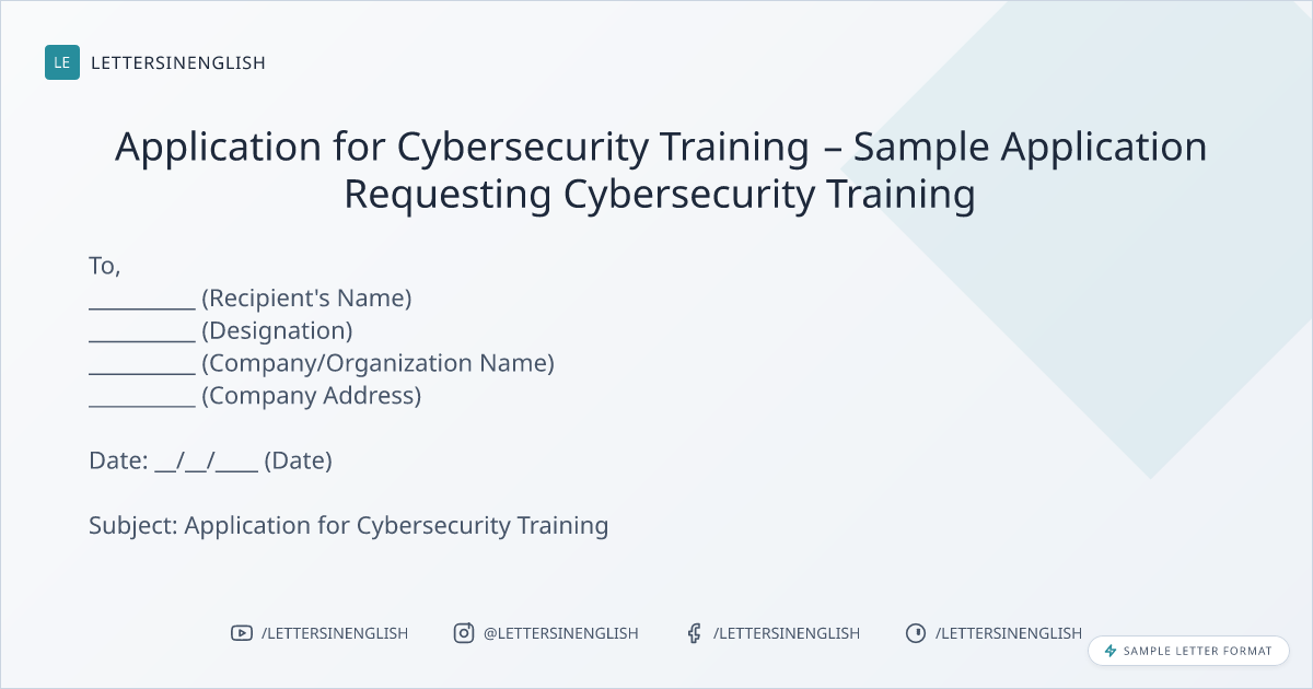 Application for Cybersecurity Training - Formal Request for Cybersecurity Training Program