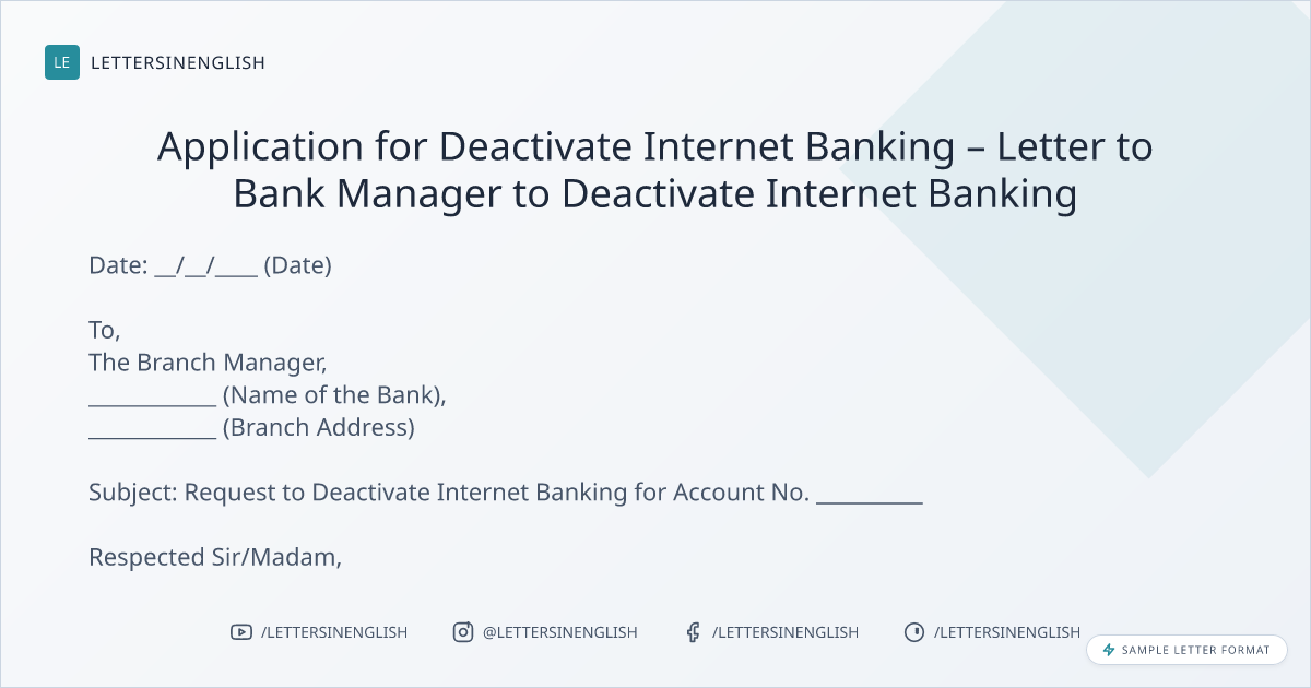 Sample Letter to Bank Manager to Deactivate Internet Banking