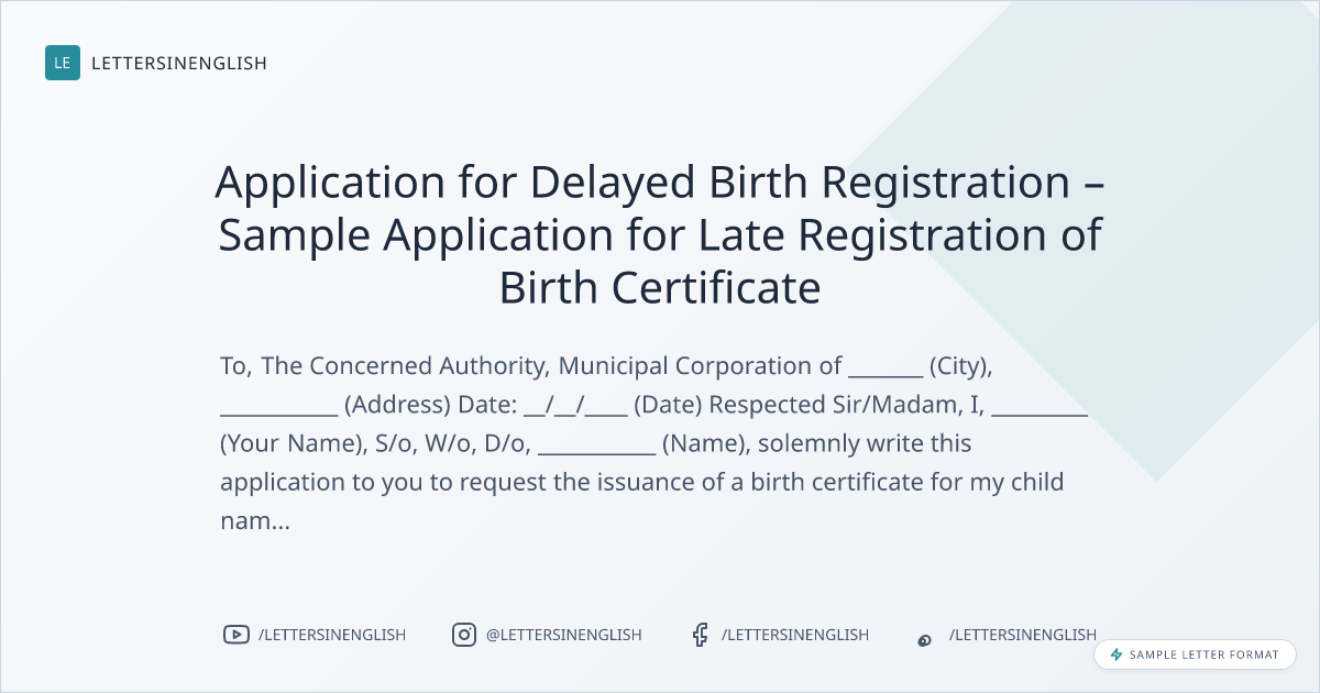 Application for Delayed Birth Registration – Sample Application for Late Registration of Birth Certificate