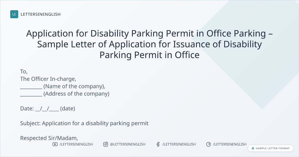 Application for Disability Parking Permit in Office Parking – Sample Letter of Application for Issuance of Disability Parking Permit in Office