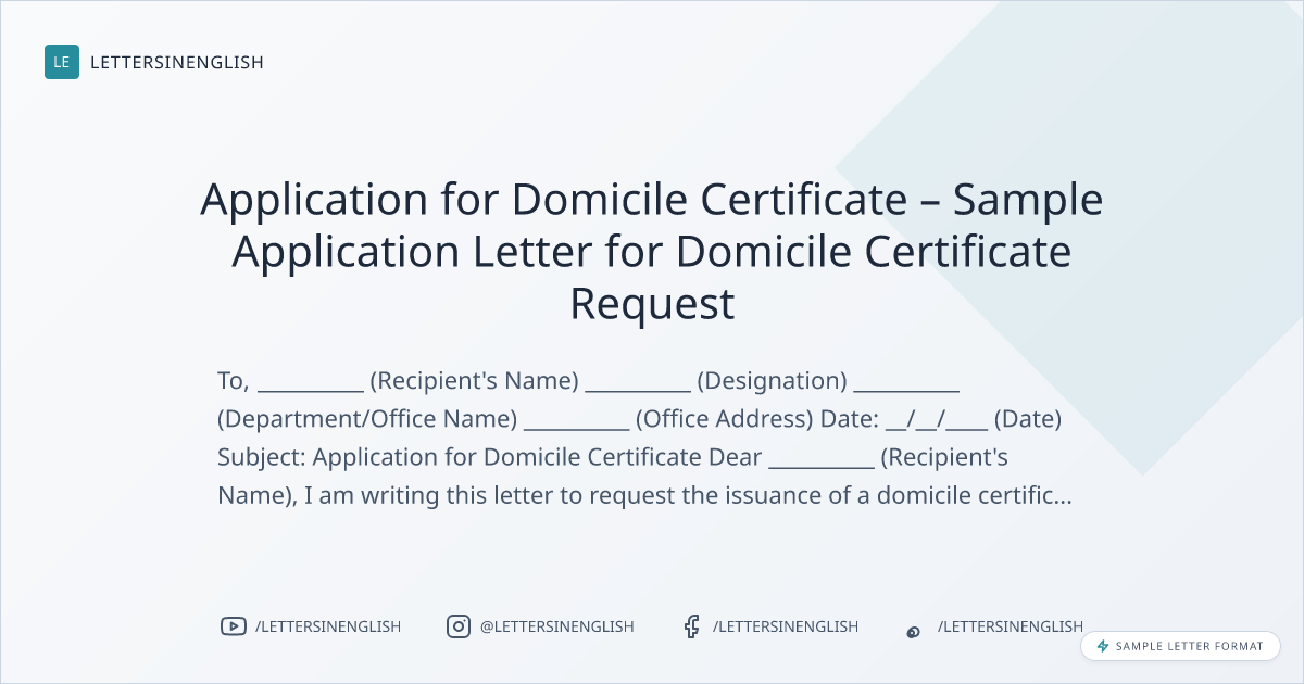 Application for Domicile Certificate – Sample Application Letter for Domicile Certificate Request