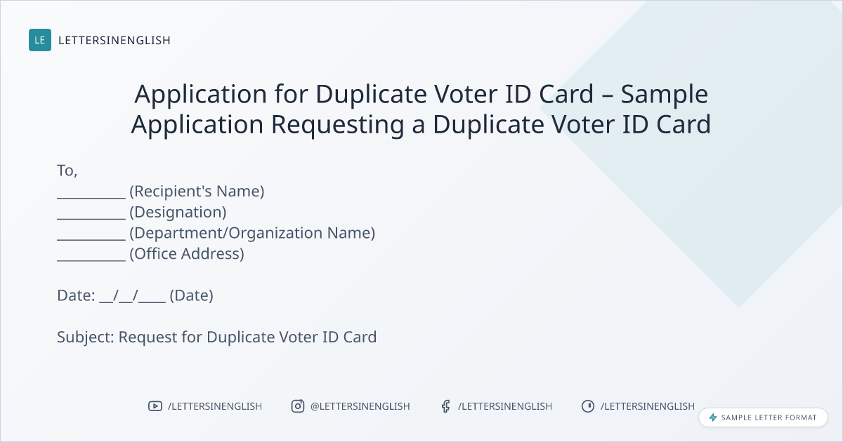Application for Duplicate Voter ID Card - Request Letter Format for Duplicate Voter ID