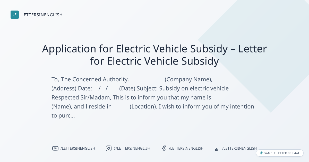 Application for Electric Vehicle Subsidy – Letter for Electric Vehicle Subsidy