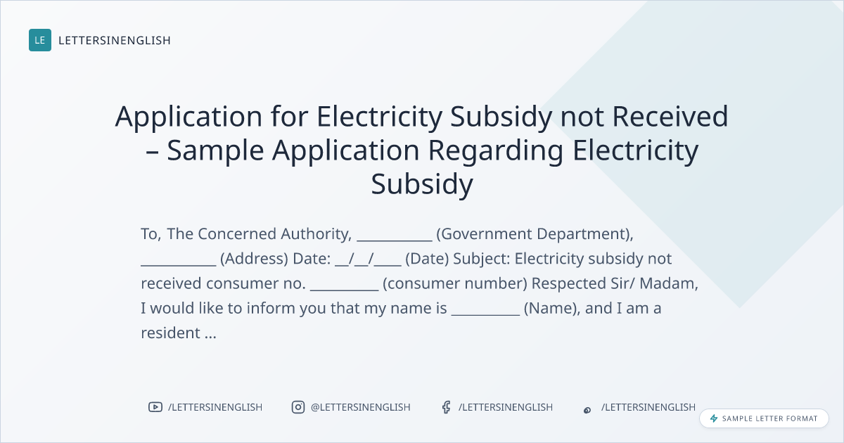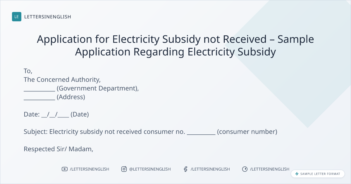 Application for Electricity Subsidy not Received – Sample Application Regarding Electricity Subsidy