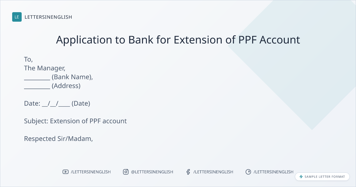 Sample Application to Bank for Extension of PPF Account