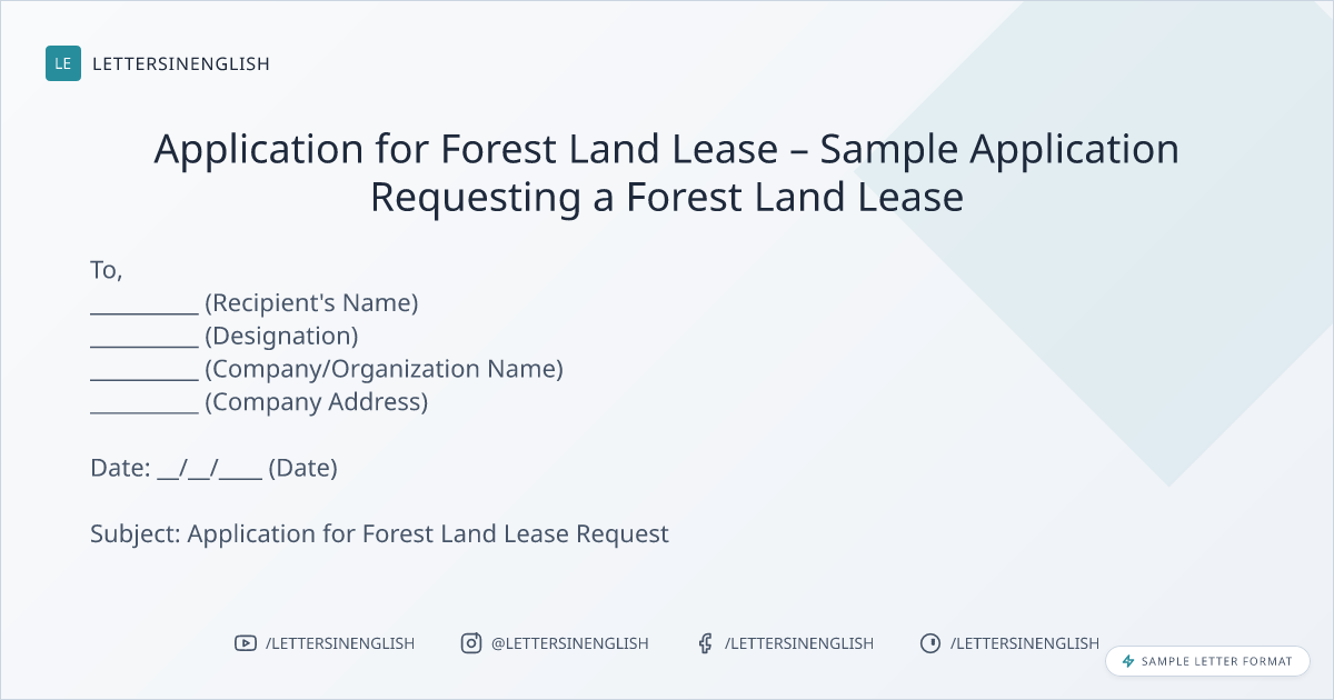 I am writing to formally request the lease of forest land from __________ (Company/Organization Name) for the purpose of __________ (specific use of land, e.g., cultivation, sustainable forestry, etc.). I am a __________ (Your Position or Title) at __________ (Your Company/Organization Name), and I believe this land is suitable for __________ (explain why the land is ideal for your purpose).