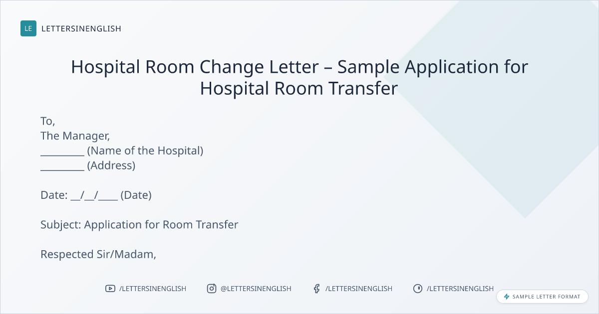 Hospital Room Change Letter – Sample Application for Hospital Room Transfer