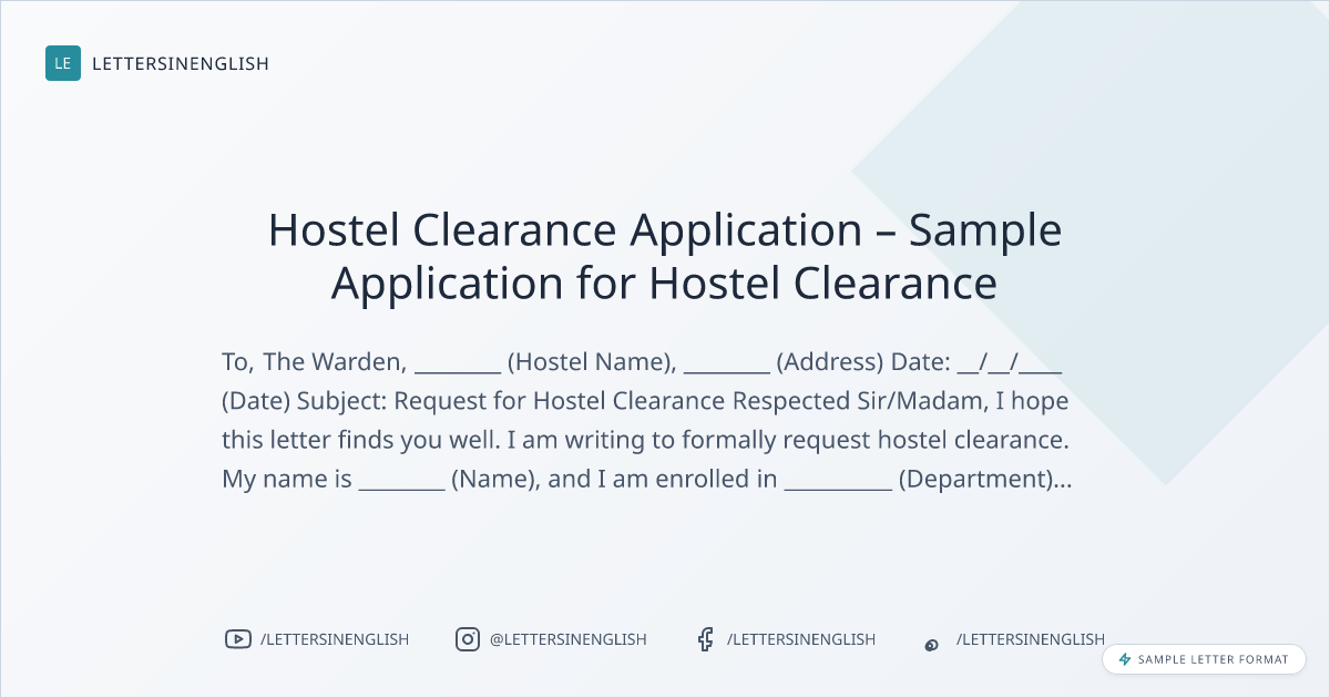 Hostel Clearance Application – Sample Application for Hostel Clearance