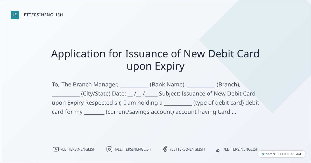 Request Letter for Renewal of Expired Debit Card - Request for Issuance of New Debit Card Upon Expiry