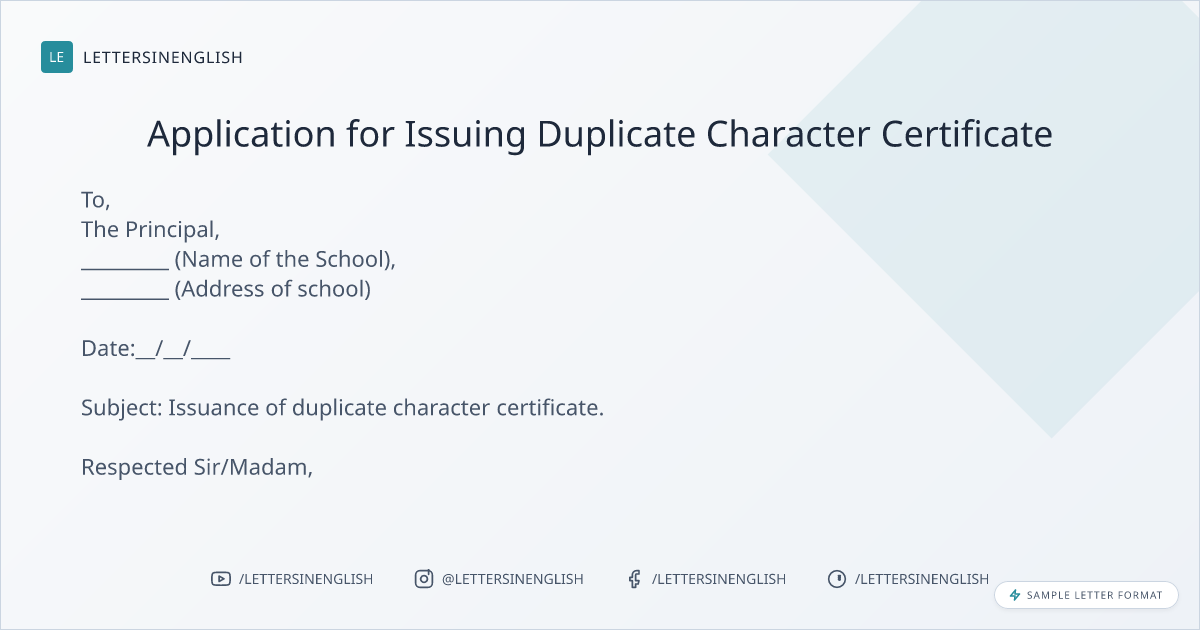 Request Letter for Issuing Duplicate Character Certificate