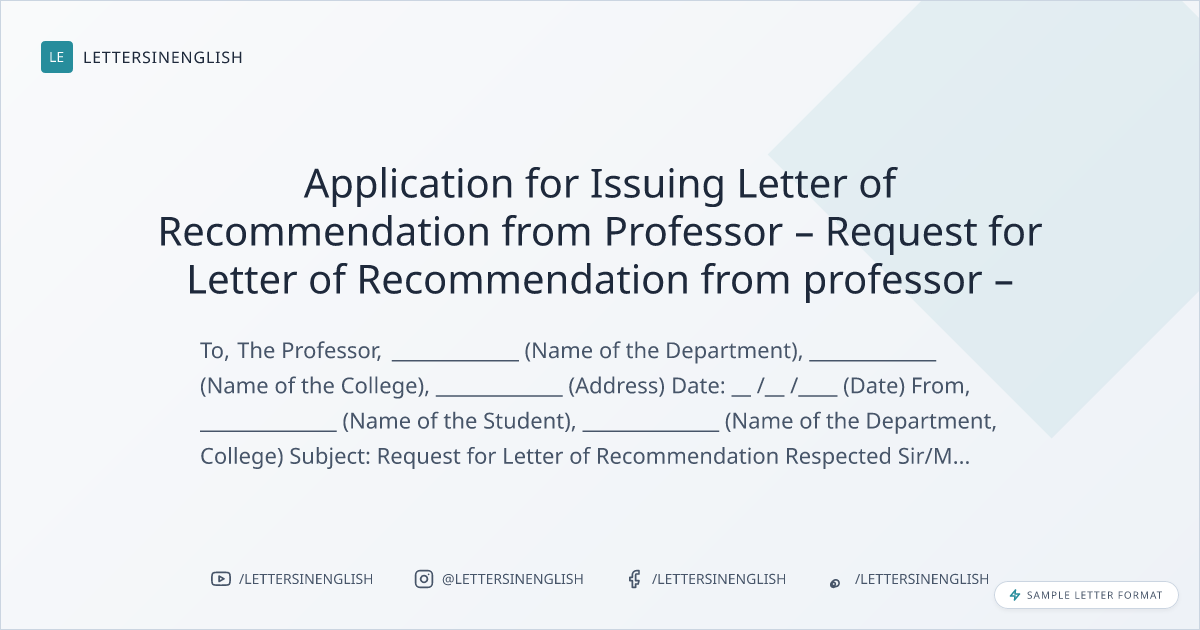 When requesting a letter of recommendation from a professor, clarity and politeness are essential. Start with a clear introduction, stating your name, department, and enrollment number. Clearly state the purpose for which you need the recommendation letter, providing specific details if necessary. Highlight your academic achievements and any relevant projects or assignments. Close the letter courteously, expressing gratitude for the professor's assistance.