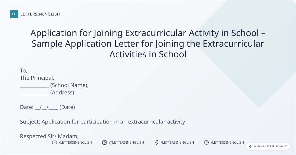LETTERSINENGLISHApplication for Joining Extracurricular Activity in School – Sample Application Letter for Joining the Extracurricular Activities in School