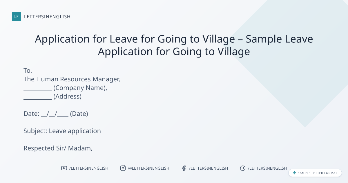 Application for Leave for Going to Village – Sample Leave Application for Going to Village