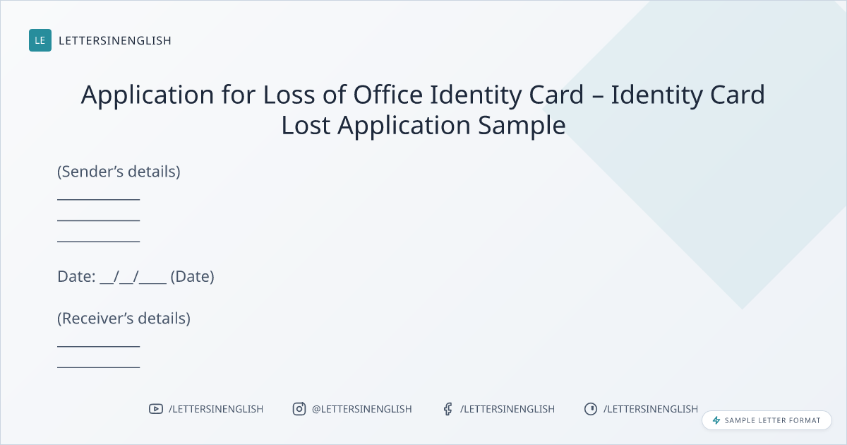 Application for Loss of Office Identity Card – Identity Card Lost Application Sample