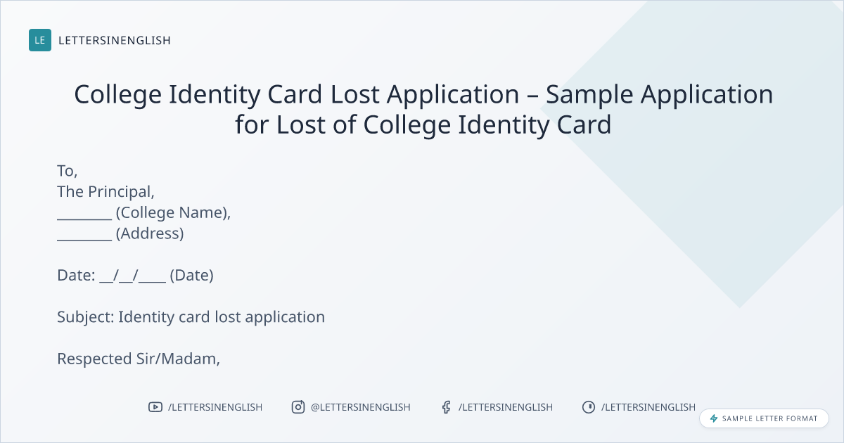 College Identity Card Lost Application – Sample Application for Lost of College Identity Card