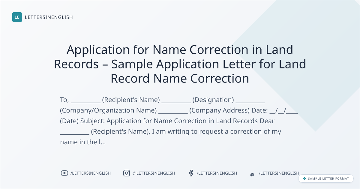 Application for Name Correction in Land Records – Sample Application Letter for Land Record Name Correction