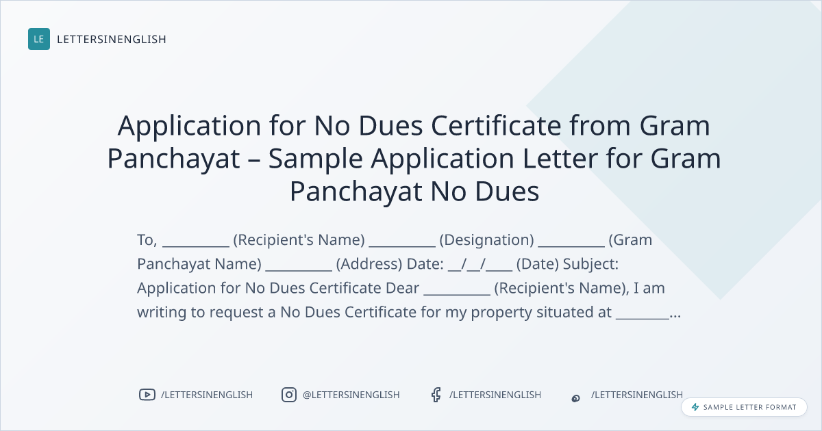 Application for No Dues Certificate from Gram Panchayat – Sample Application Letter for Gram Panchayat No Dues