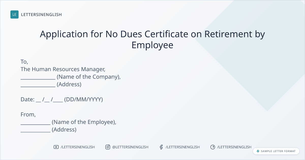 Request Letter for No Dues Certificate on Retirement by Employee - Request Letter for No Dues Certificate Upon Retirement