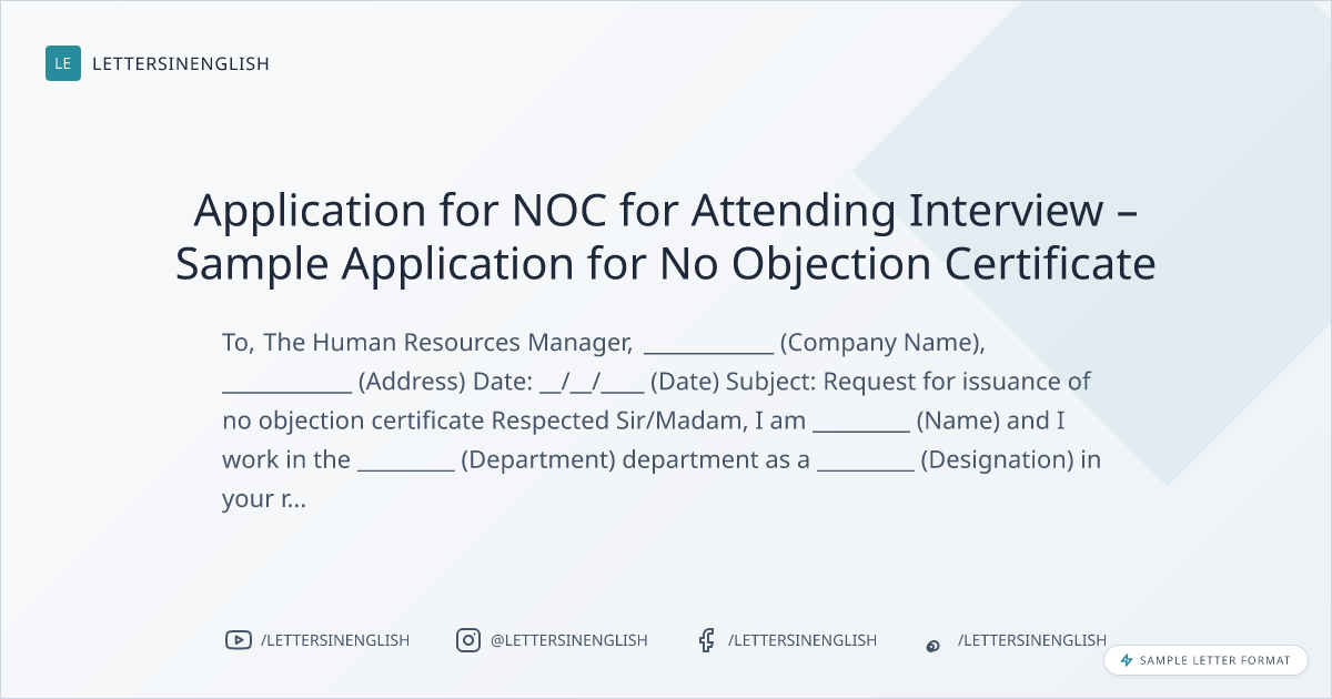 Application for NOC for Attending Interview – Sample Application for No Objection Certificate