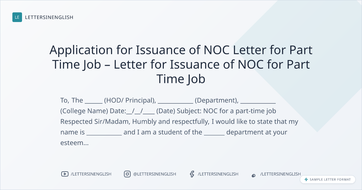Application for Issuance of NOC Letter for Part Time Job – Letter for Issuance of NOC for Part Time Job