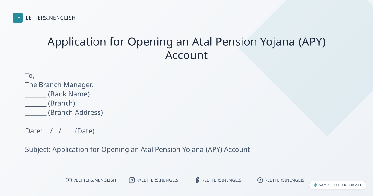 When writing an application to open an Atal Pension Yojana (APY) account, it's crucial to clearly express your intention, provide all necessary details such as identification proofs and address proof, and express gratitude for their assistance. Ensure the letter is polite, concise, and includes all required attachments.