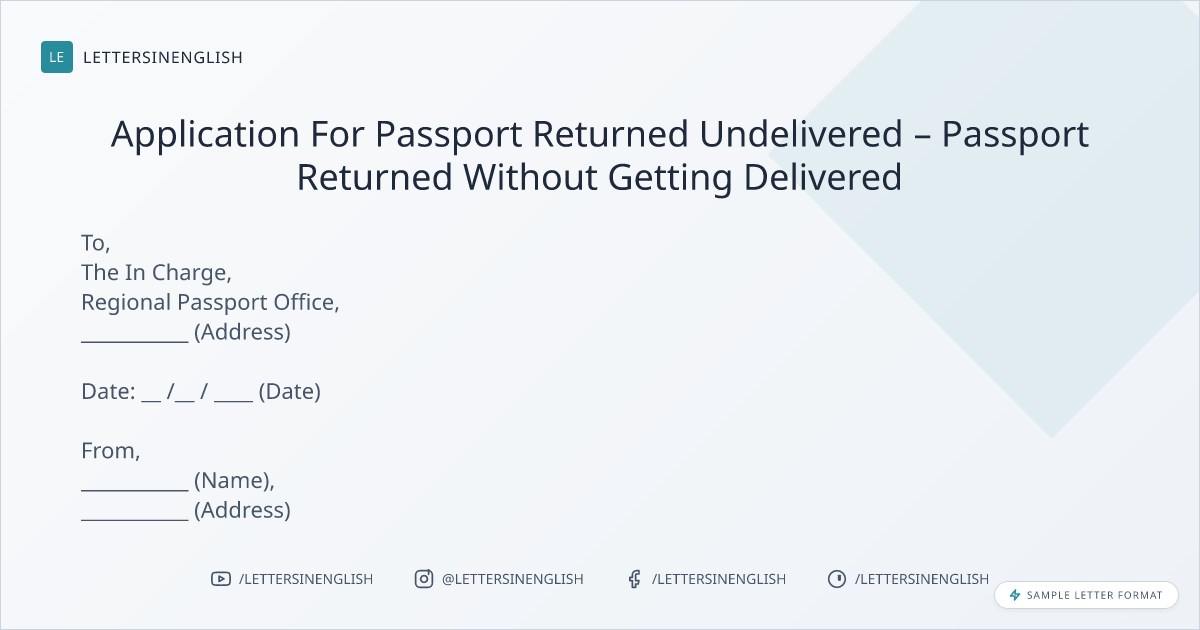 Request Letter for Resending the Returned Undelivered Passport