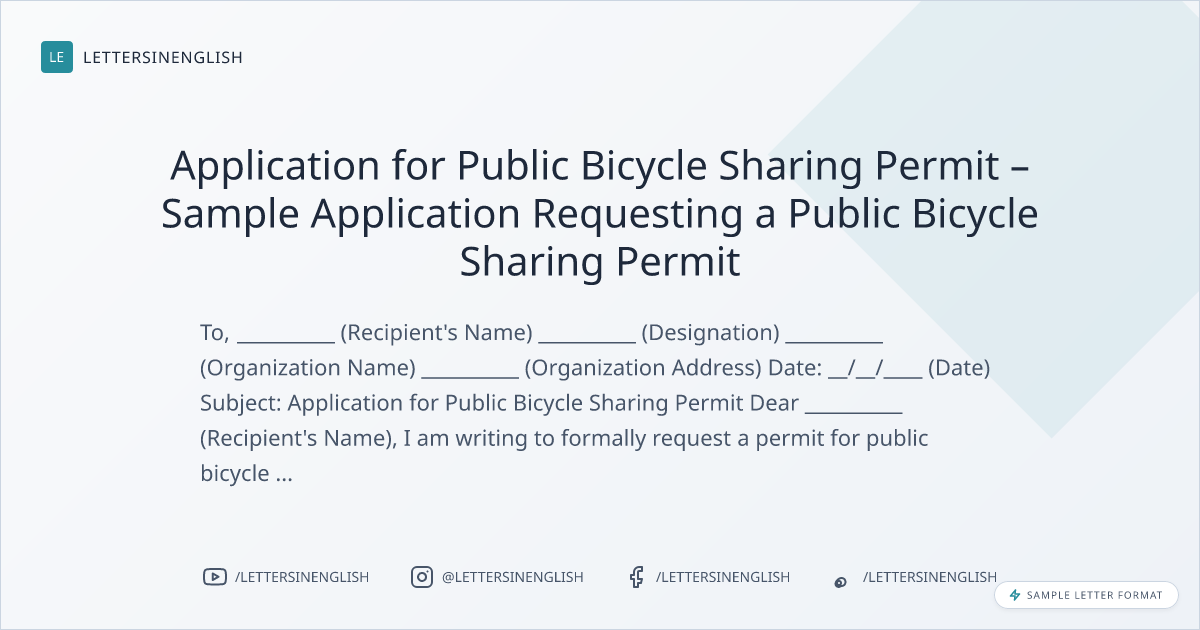 Application for Public Bicycle Sharing Permit - Sample Letter Requesting a Permit for Public Bicycle Sharing Services