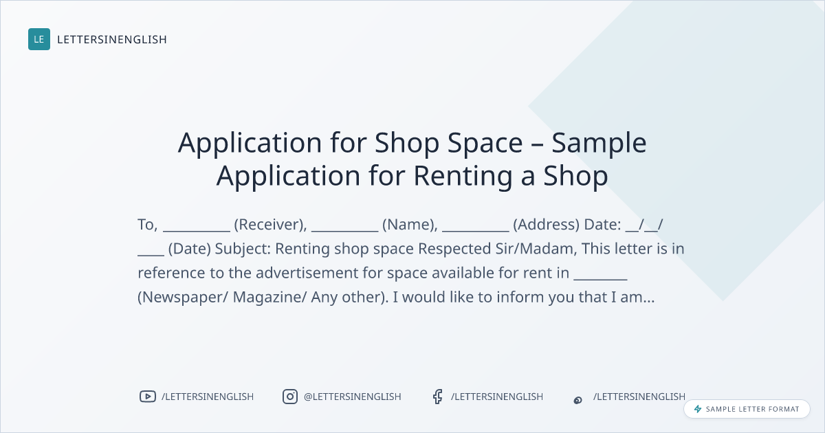 This letter is in reference to the __________ (Address). Respected, as per your advertisement for space available for rent in ________ (Newspaper/ Magazine/ Any other).