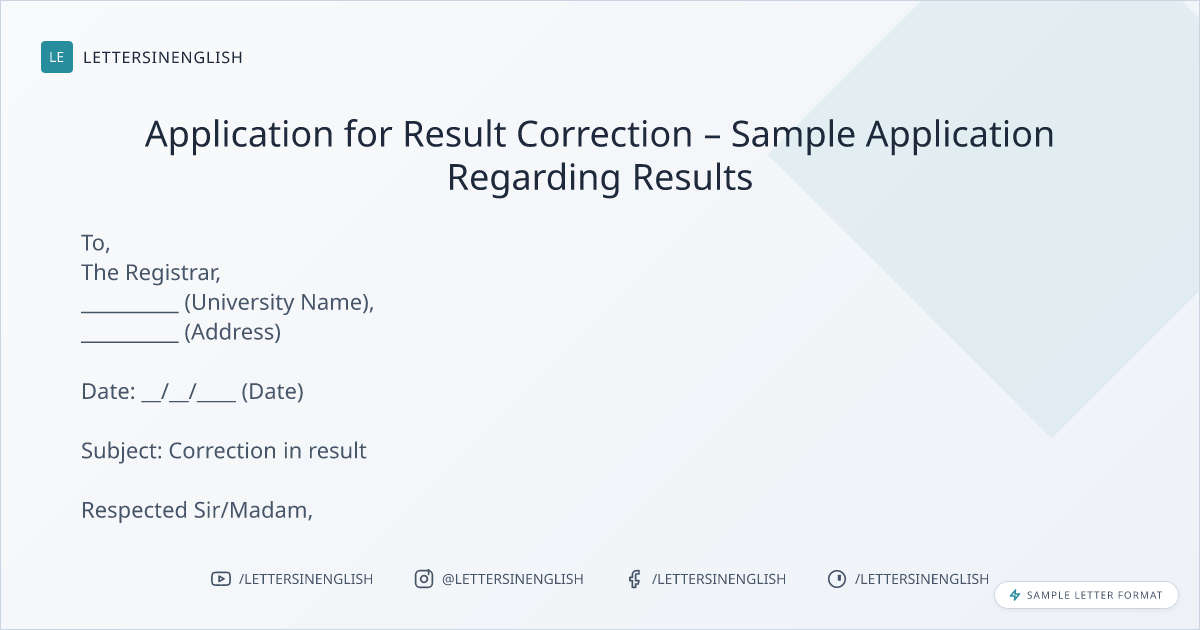 Application for Result Correction – Sample Application Regarding Results