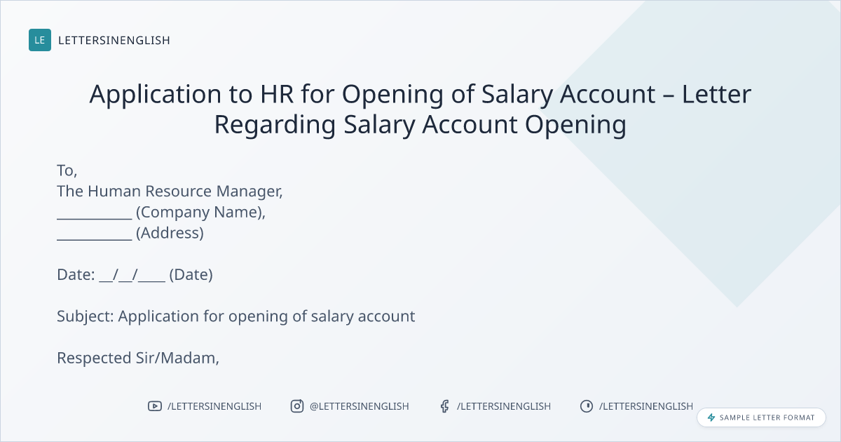 Application to HR for Opening of Salary Account – Letter Regarding Salary Account Opening