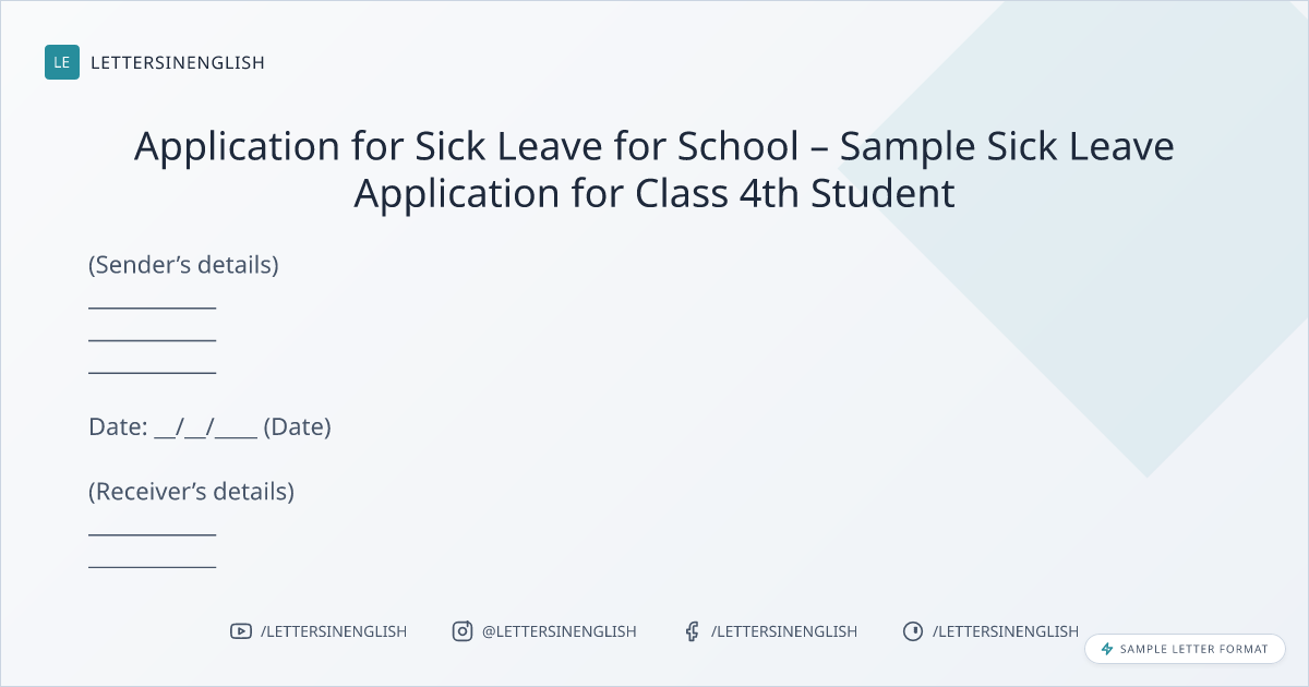 Application for Sick Leave for School – Sample Sick Leave Application for Class 4th Student