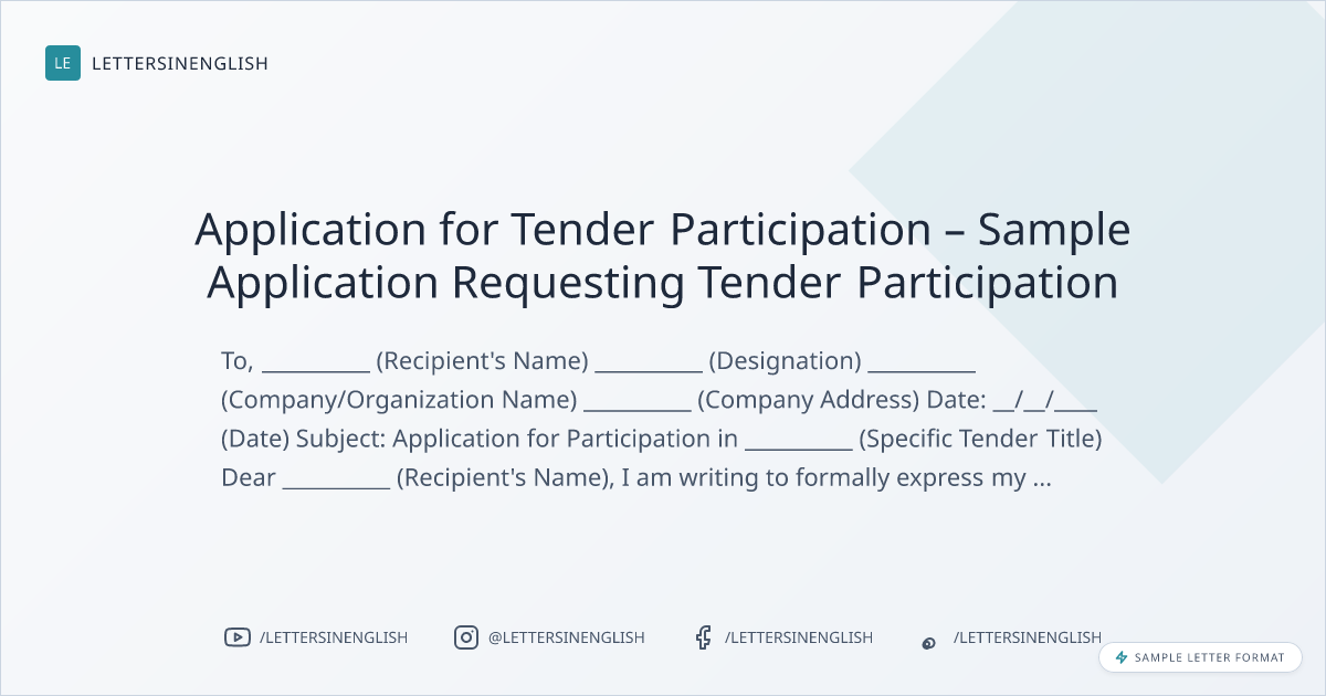 Subject: Application for Participation in __________ (Specific Tender Title)