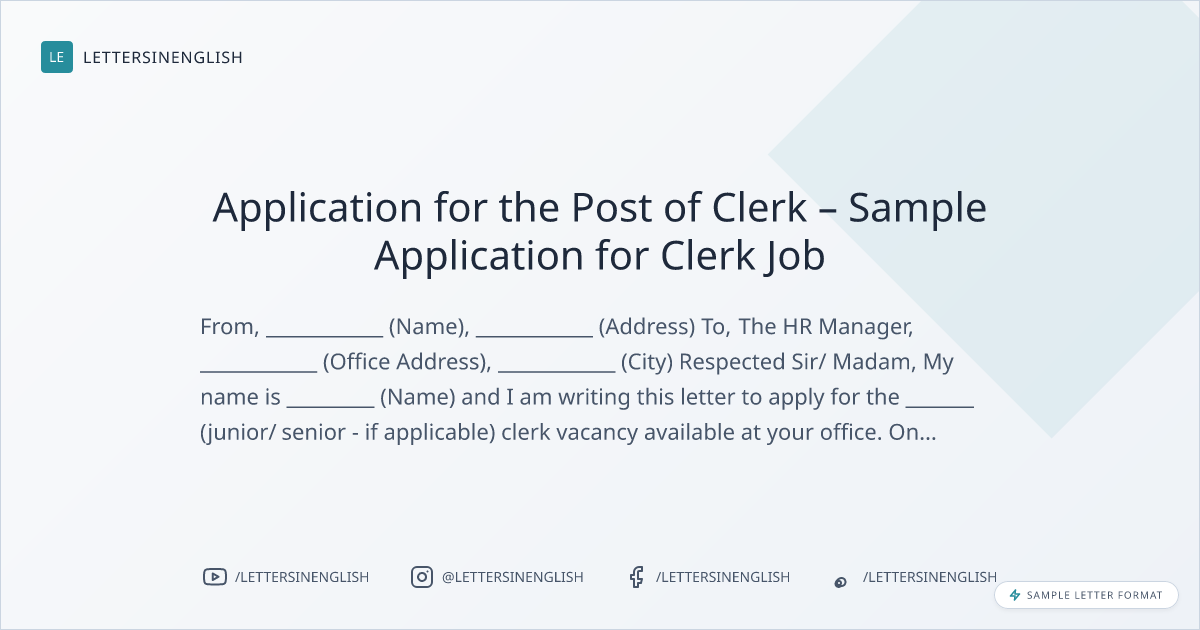 Application for the Post of Clerk – Sample Application for Clerk Job