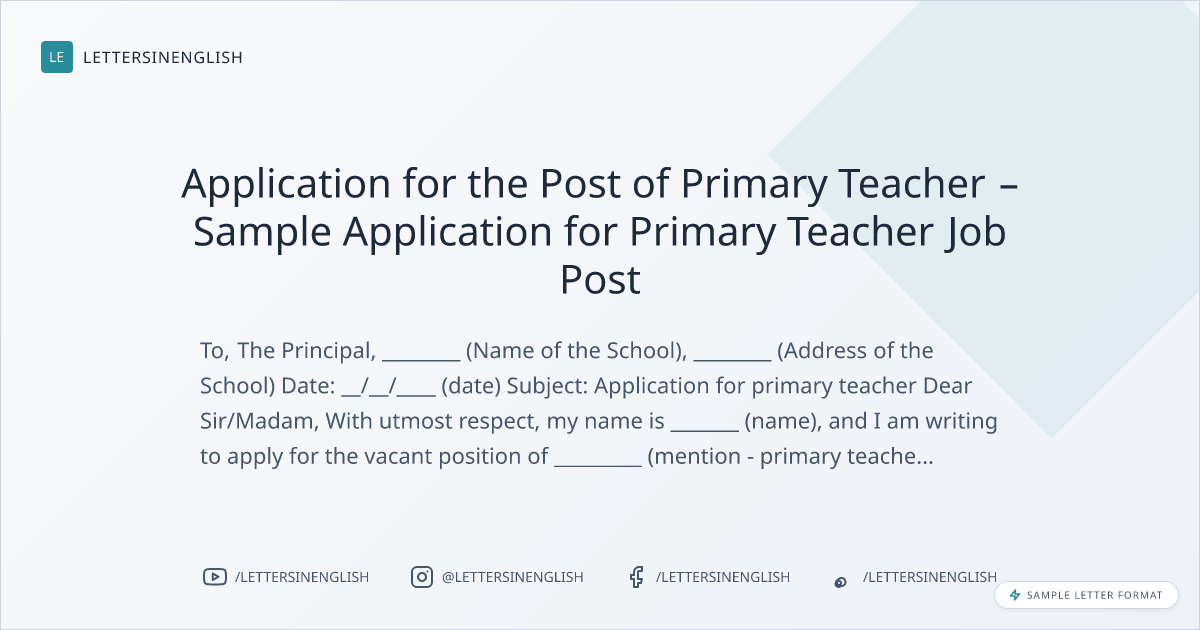 Application for the Post of Primary Teacher – Sample Application for Primary Teacher Job Post
