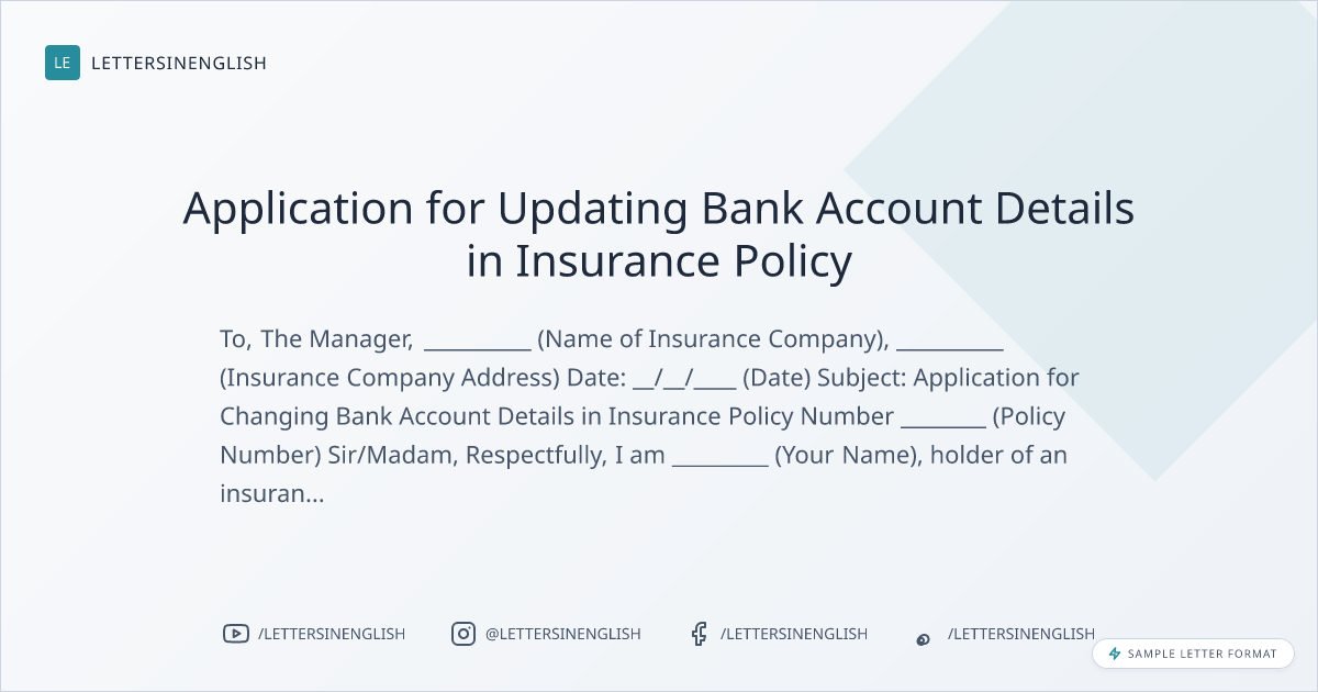 Subject: Application for Changing Bank Account Details in Insurance policy number ________ (policy number).