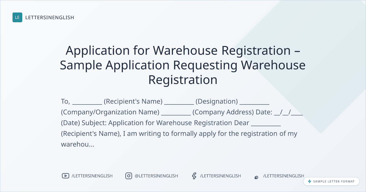 Application for Warehouse Registration - Request Letter Template for Warehouse Registration