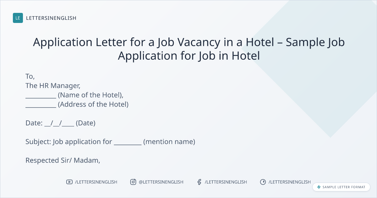 Application Letter for a Job Vacancy in a Hotel – Sample Job Application for Job in Hotel