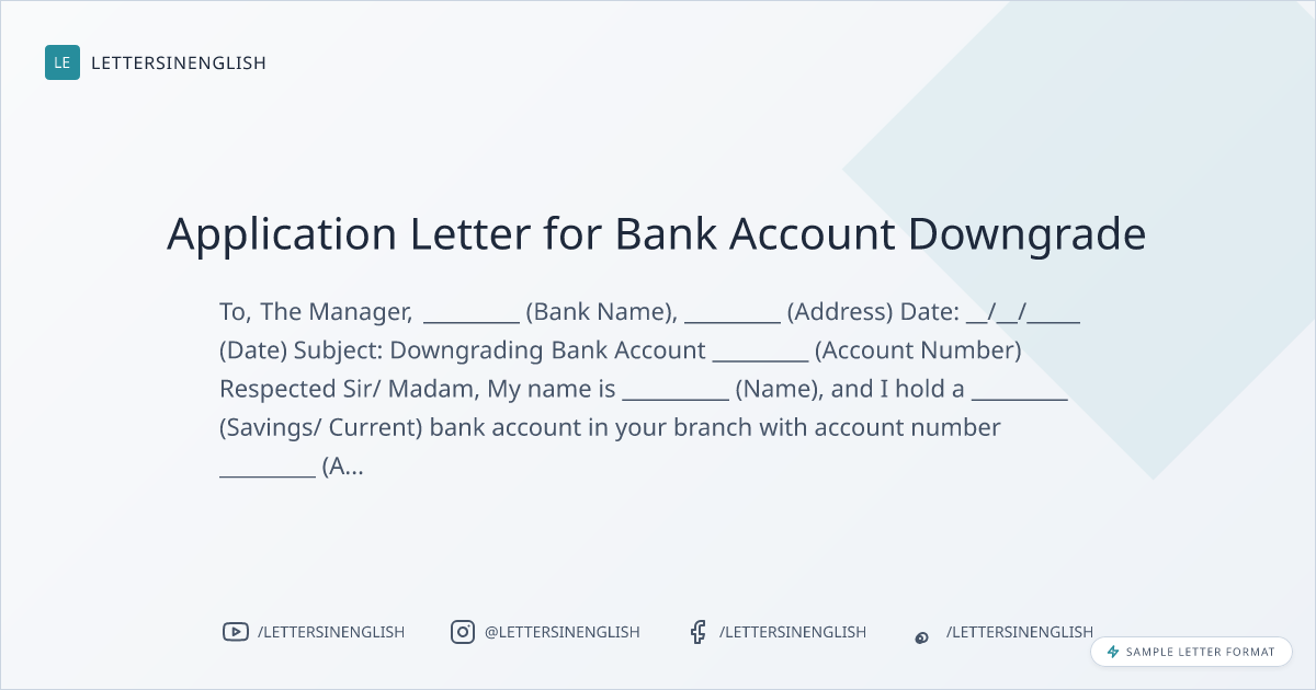 I look forward to your kind and quick support. I am herewith enclosing __________ (account downgrade form, customer request form, KYC documents, and all other relevant documents) along with the application. In case of any queries, you may contact me at _______ (Contact number).