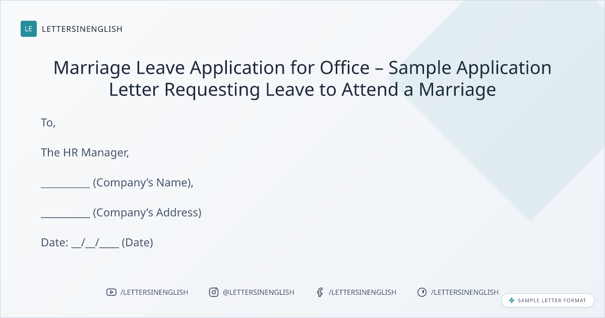 Marriage Leave Application for Office – Sample Application Letter Requesting Leave to Attend a Marriage