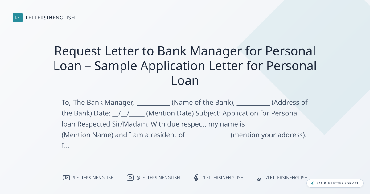 Request Letter to Bank Manager for Personal Loan – Sample Application Letter for Personal Loan