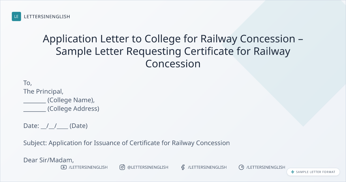 Application Letter to College for Railway Concession – Sample Letter Requesting Certificate for Railway Concession