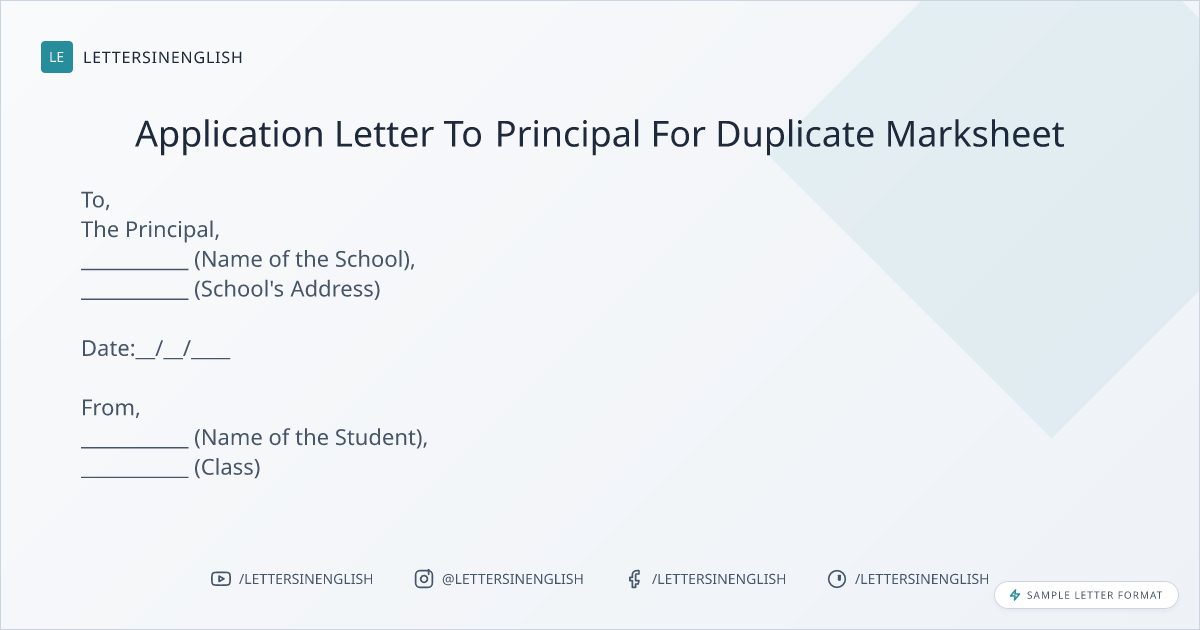 Application Letter To Principal For Duplicate Marksheet