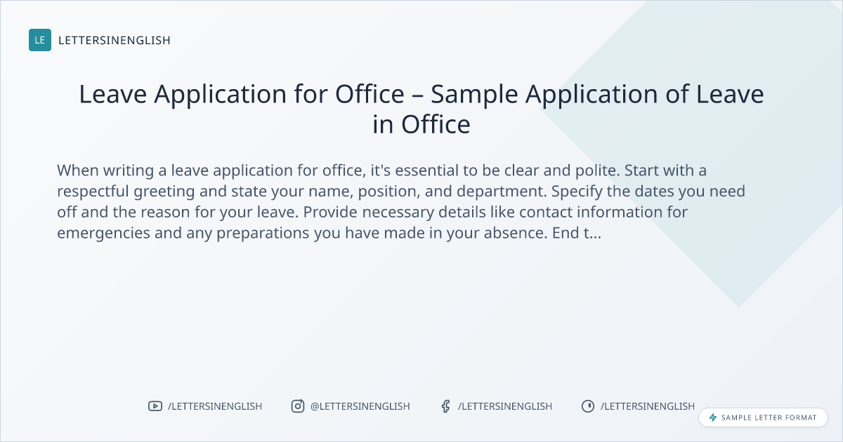 Sample Letter: Leave Application for Office