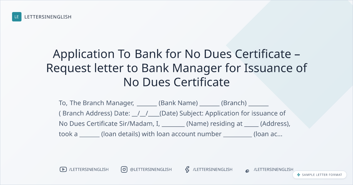 Application To Bank for No Dues Certificate – Request letter to Bank Manager for Issuance of No Dues Certificate