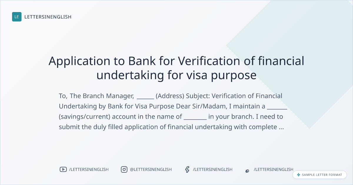 Request Letter for Bank Verification of Financial Undertaking for Visa Application
