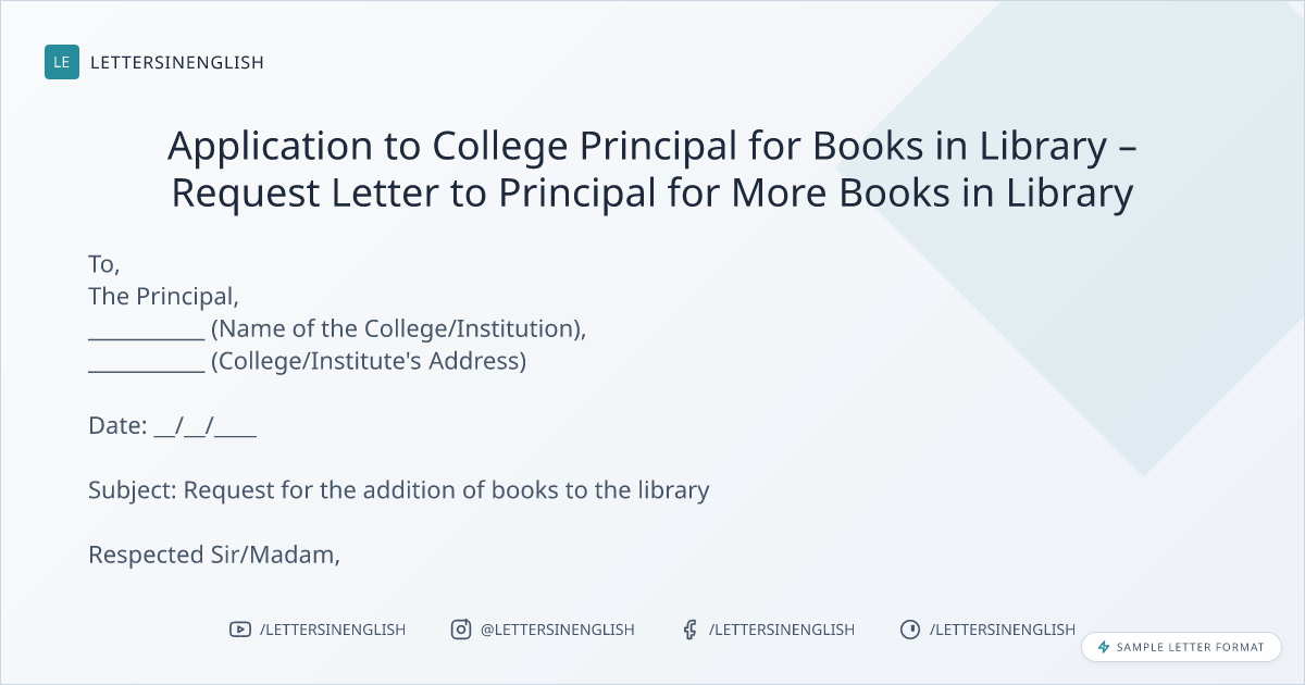 Application to College Principal for Books in Library – Request Letter to Principal for More Books in Library