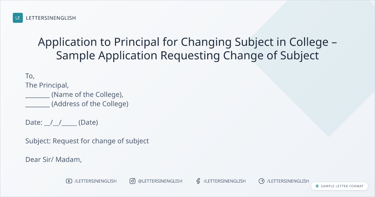 Application to Principal for Changing Subject in College – Sample Application Requesting Change of Subject