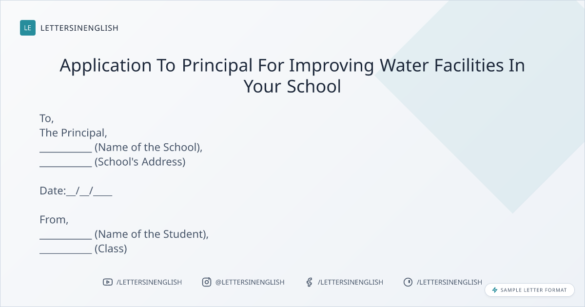 Application To Principal For Improving Water Facilities In Your School